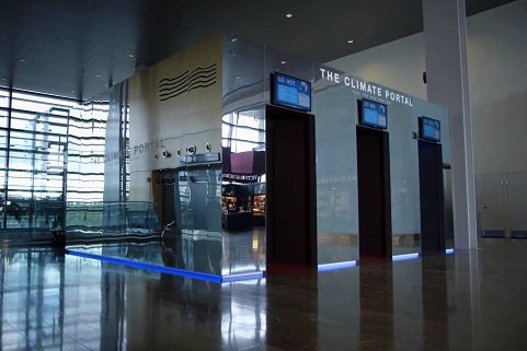 Stockholm’s Arlanda Airport in Sweden has developed a ‘Climate Portal’ to let travellers test weather in any destination around the world without having to leave the airport. The booth uses a temperature-control system, wind machines and audio-visual cues to simulate different climates by using live weather data from places around the world. About 60,000 people have tried out the Climate Portal and airport officials hope it spurs travellers to want to book a future flight or visit one of the duty-free shops to grab extra clothes.