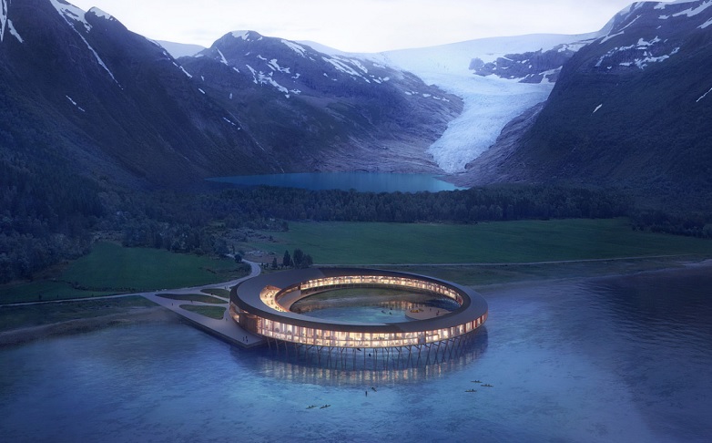 A new hotel in northern Norway will be the first to meet the energy positive standard by producing more energy than it uses. Designed by the Norwegian sustainable design studio, Snøhetta, the Svart hotel will be built at the foot of the Svartisen glacier in the municipality of Meløy. The circular-shaped hotel is inspired by local architecture including the ‘fiskehjell’ (a wooden structure used to dry fish) and the ‘rorbue’ (a traditional house used by fishermen). The hotel is expected to be completed by 2023.