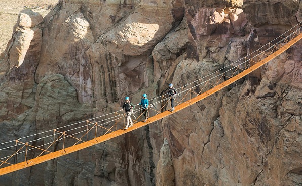 The Cave Peak aerial stairway at Amangiri is the longest climb of its kind in the Northern Hemisphere. There are 120 thin metal steps connected by a skeleton of wiring that spans 60 metres in length 122 metres above rock escarpments in a protected valley in remote southern Utah.