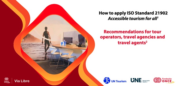 UN Tourism, ONCE Foundation and UNE in collaboration with European Network for Accessible Tourism, Sage Travelling and Impulsa Igualdad have released Accessible Tourism for All which provides a set of recommendations for tour operators, travel agencies and travel agents to implement ISO Standard 21902. Companies and professionals can use the guidelines to implement criteria if they operate accessible tourism experiences from within a physical space, online, or via both channels.